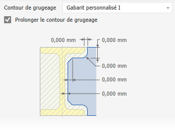 Remarque : Pour utiliser l'option Contour personnalisé, vous devez d'abord créer la forme du grugeage dans le Centre de contenu, puis utiliser le membre qui contient le contour de grugeage personnalisé dans l'ensemble.