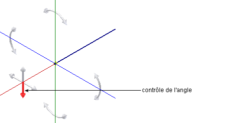 Pour utiliser la commande d'angle, cliquez sur la flèche pointant vers la position angulaire requise. Une fois la position voulue obtenue, sélectionnez un point sur la ligne afin de créer un segment selon cette nouvelle position angulaire.