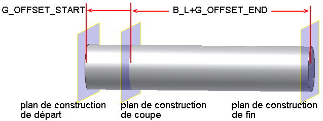 G_OFFSET_END évalue la longueur entre le plan de fin et le plan de coupe moins B_L et affiche la distance du traitement d'extrémité dans Frame Generator. Pendant la création du modèle, le paramètre peut être égal à zéro.