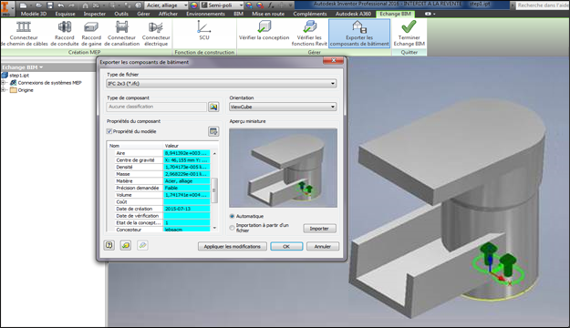 Le format de fichier IFC (Industry Foundation Classes) constitue une norme ouverte permettant l'échange d'informations sur les modèles entre les fabricants, les architectes, les ingénieurs et les constructeurs. Autodesk Inventor 2016 R3 propose le format IFC comme option d'exportation afin de faciliter la réalisation de conceptions mécaniques 3D pour les applications de construction.