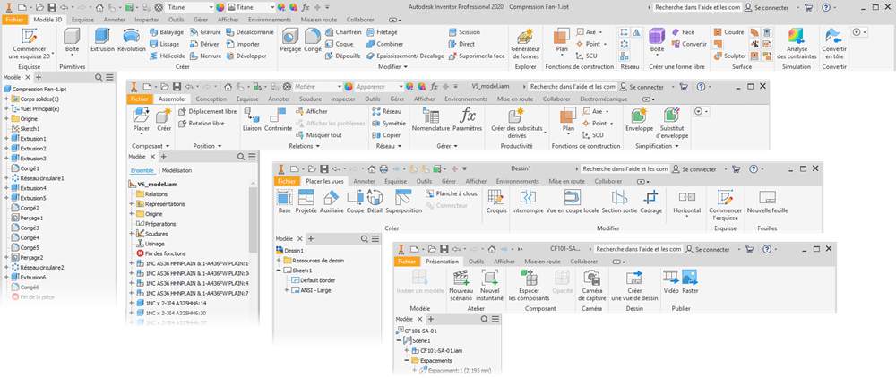 L'affichage de différentes parties de l'interface utilisateur d'Inventor a été entièrement actualisé.