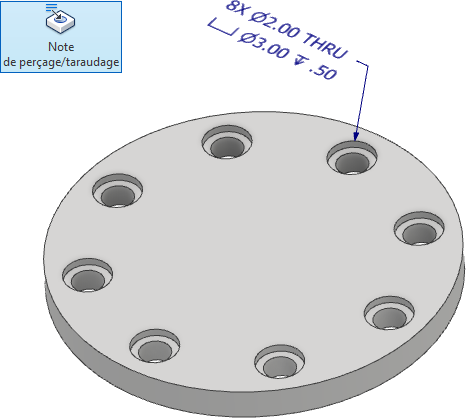 La commande Note de perçage/taraudage de l'annotation générale a été mise à jour de manière à afficher la quantité du réseau.