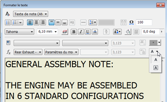 Vous pouvez à présent ajouter un cadre de texte autour du texte et des indications. Dans la boîte de dialogue Formater le texte, sélectionnez la flèche de la liste déroulante, comme illustré ci-dessous, et sélectionnez Cadre de texte.