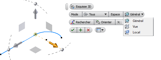 La commande Transformation 3D a été ajoutée à l'environnement d'esquisse 3D, dans le groupe de fonctions Modifier. La nouvelle commande Transformation 3D propose un ensemble puissant d'outils de manipulation de la géométrie.