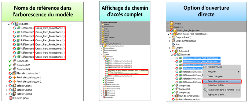 Les améliorations apportées en matière de signalement des références de pièces déduites dans les ensembles vous permet d'identifier plus facilement les pièces concernées et d'y accéder.