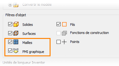 Vous pouvez désormais importer des données PMI graphiques à partir d'un fichier STEP 242. Pour cela, sélectionnez l'option PMI graphique.