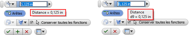 Vous pouvez modifier les noms des fonctions et des esquisses depuis le panneau de propriétés. Cliquez sur le texte du chemin de navigation à modifier pour l'activer. Cliquez de nouveau pour accéder au mode d'édition et modifier le texte. Appuyez sur Entrée pour terminer la modification. Le nom du noeud du navigateur est mis à jour lorsque vous cliquez sur OK pour terminer le perçage.