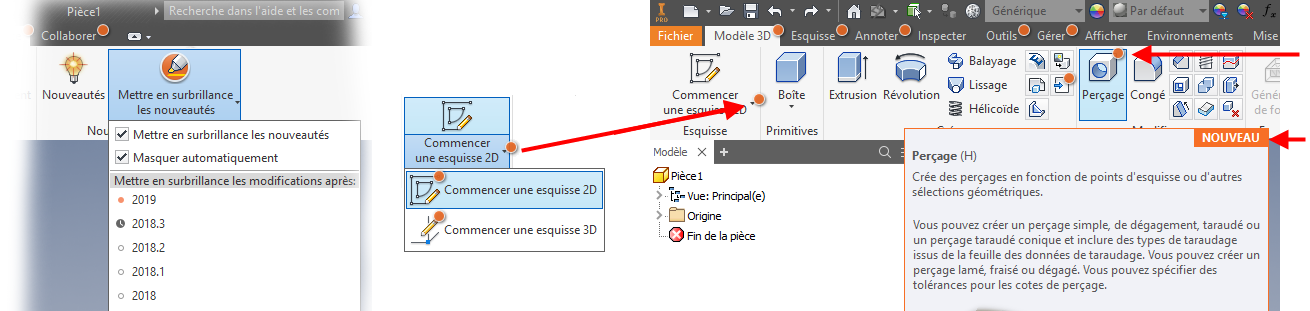 Voici quelques exemples de comparaison entre les versions antérieures (image de gauche) et la version 2019.1 (image de droite) :