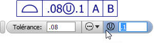 La valeur de la tolérance du contour dans le tolérancement géométrique correspond à la largeur totale de la tolérance du contour. La valeur qui suit le symbole Disposée inégalement désigne la quantité de la tolérance sur la base de laquelle la matière est ajoutée à partir de la valeur nominale.