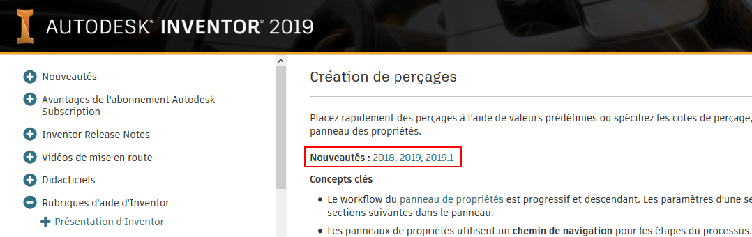 Pour les commandes affichant un badge de nouveauté ou de mise à jour, lorsque vous utilisez la touche F1 pour accéder à une page d'aide (dans la partie supérieure de la page), des liens vers la rubrique Nouveautés sont disponibles et décrivent les modifications apportées à la fonction ou à la commande. Les liens affichent la version dans laquelle une modification a pris effet.