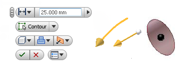 L'affichage canevas est superposé sur la fenêtre graphique pour prendre en charge les opérations de manipulation directe. Elle est composée généralement d'une mini-barre d'outils contenant des options de commande, des manipulateurs et une zone de saisie. La mini-barre d'outils permet d'interagir directement et de manière prévisible avec le modèle 3D. Les boutons OK et Annuler situés au bas de l'affichage canevas permettent de confirmer ou d'annuler une opération.