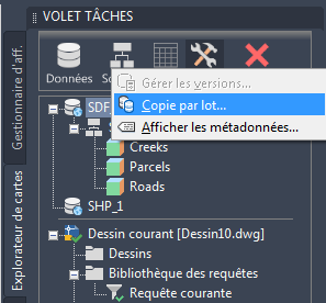 Vous allez copier le calque Roads du format SDF vers le format SHP à l'aide de la fonction Copie par lot.