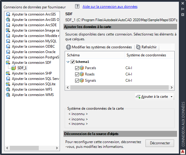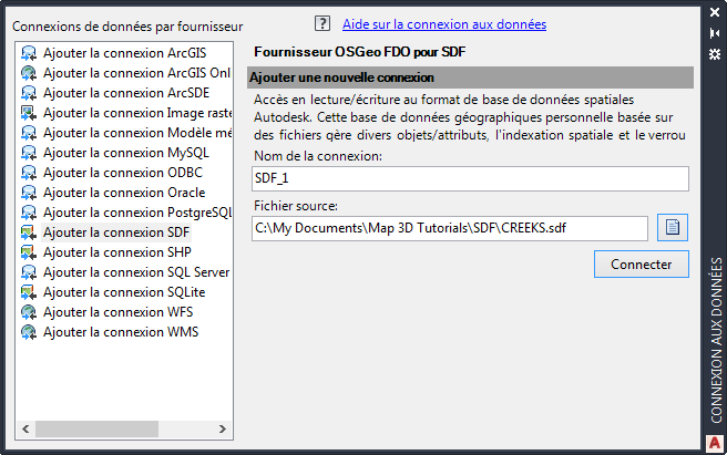Pour établir une connexion à un fichier SDF