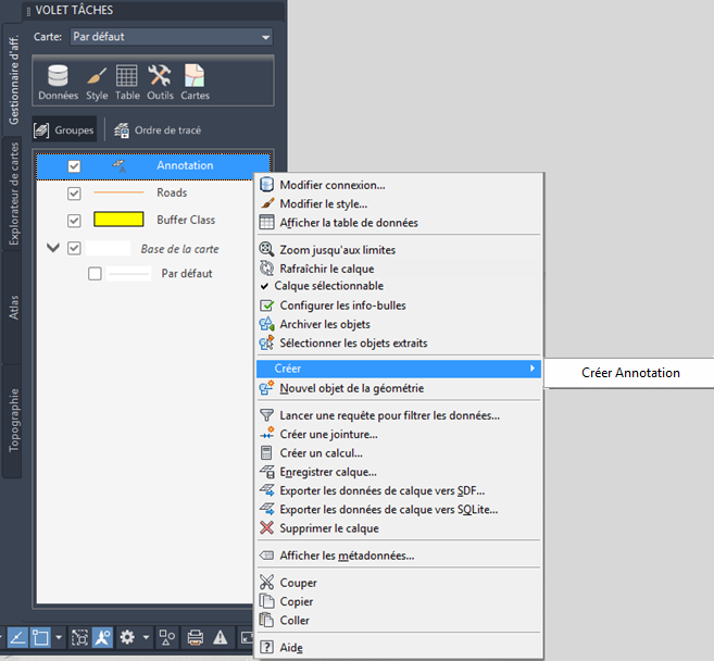 Etant donné que le calque de texte est une banque de données, archivez les modifications que vous avez apportées afin qu'elles deviennent disponibles dans d'autres cartes.
