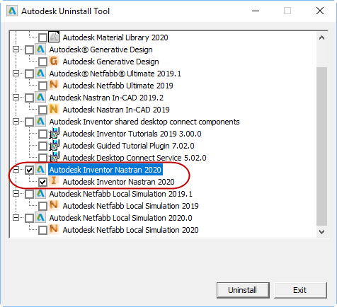 - Cochez la case en regard de Autodesk Inventor Nastran 20xx.