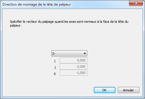Spécifiez le vecteur de montage de la tête de palpeur :