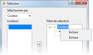 Si vous cliquez avec le bouton droit de la souris sur Couleur dans le filtre de sélection et sélectionnez Exclure dans le menu contextuel :