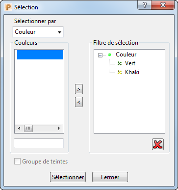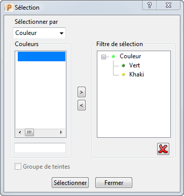La représentation dans le filtre de sélection est également modifié et présente une croix à côté de ces éléments,