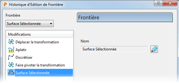 Pour afficher le dialogue Historique d'édition de frontière:
