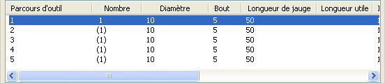 Liste de parcours d'outils — Cliquer pour afficher la liste de parcours d'outils et leurs paramètres (utilisés dans le programme CN) dans un dialogue à part.