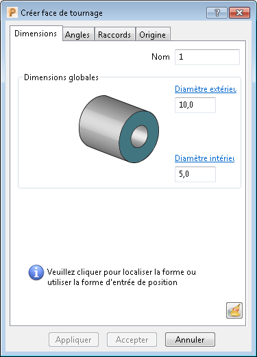 Diamètre extérieur — Entrer une valeur pour spécifier le diamètre extérieur de la feature.
