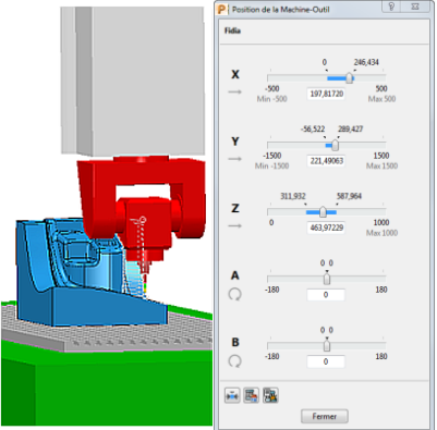 - Reconfigurer la position de machine-outil et l'axe d'outil.