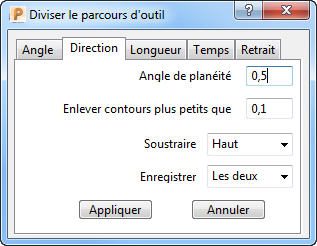 Dans la boîte de dialogue Diviser le parcours d'outil > Direction :