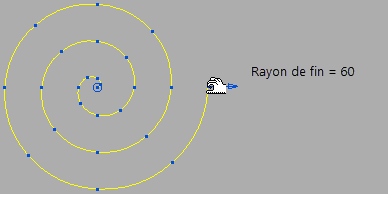 • une poignée bleue qui vous permet d'éditer le Rayon de fin graphiquement.