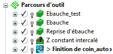 Utiliser le menu Parcours d'outils pour créer et gérer les parcours d'outils dans le projet actuel.