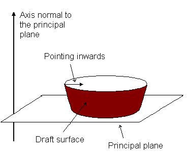 Si vous voulez qu'une surface de dépouille ce projette vers l'intérieur, assurez-vous que la flèche parallèle au plan principal pointe vers l'intérieur :