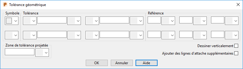 Utilisez cette boite de dialogue pour définir les tolérances géométrique enfermées dans la bulle.
