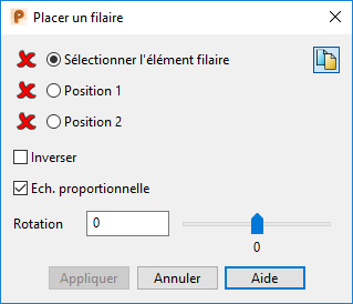 Deux points sont affichés sur l'élément filaire sélectionné et la boite de dialogue Courbe de position s'affiche :