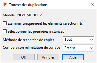- Sélectionnez Visualisation > Modèle > Trouver des duplications.