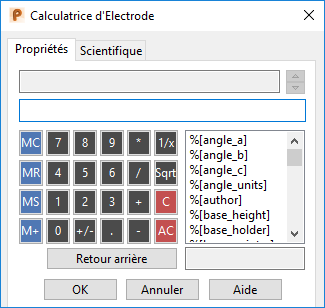 pour entrer une expression en utilisant la boite de dialogue Calculatrice d'électrode