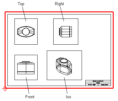 Si une mise en plan automatique n'existe pas déjà, cela crée un dessin contenant quatre vues des éléments actuellement affichés dans le modèle :