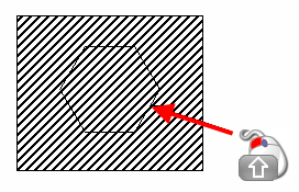 Quand une région externe contient de plus petites régions internes ou d'îlots, vous pouvez hachurer les régions externes sans hachurer les régions internes. Les régions d'îlots sont celles qui ne touchent pas la régions externe, comme montré sur la droite :