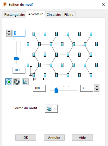 Pour créer des motifs alvéolaires, vous devez sélectionner les éléments de motif avec lesquels vous voulez créer le motif. Utilisez les options pour déterminer comment les éléments sont créés.