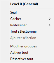 - Cliquez avec le bouton droit sur un bouton sur la barre d'outils de niveaux pour afficher le menu contextuel :