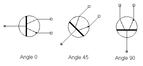 • Angle — Cette angle fait pivoter la définition du symbole pour créer le symbole. La rotation se fait autour de l'axe normal au plan principal. Quand vous changez l'angle, la définition du symbole pivote dans la fenêtre graphique de symbole actuel.