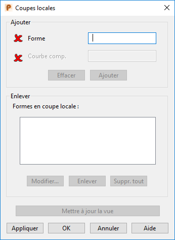 Enlever — Retirez la coupe locale sélectionnée de la liste Formes en coupe locale.
