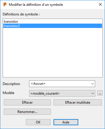 - Effacer inutilisée — Efface les définitions de symboles qui ne sont pas utilisées.
