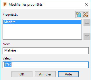 - Entrez le nom de la propriété contenant les données requises. Le nom de la propriété est également affiché en tant que titre de la colonne. Si une propriété d'utilisateur correspond au nom d'une colonne standard, la valeur est collée à cette colonne. Par exemple, si vous avez un composant appelé écrou qui a une propriété utilisateur définie appelé Pièce, avec une valeur test, la colonne est appelée écrou test.