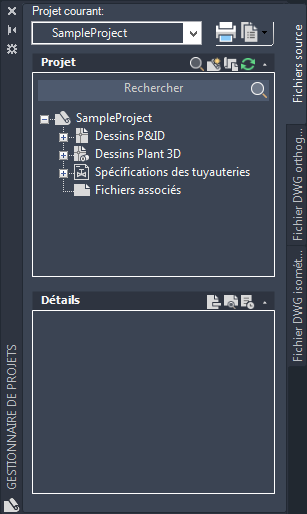 Fournit des informations sur le projet ou sur des dessins sélectionnés dans l'arborescence du Gestionnaire de projets.
