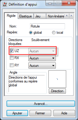 - Dans l'onglet Rigide, vérifiez que l'option Directions bloquées UZ est sélectionnée.