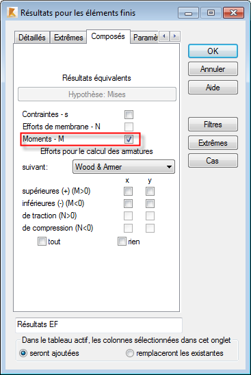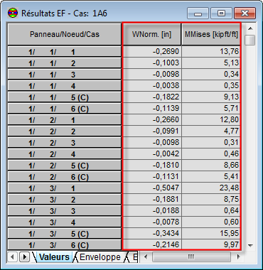 Les colonnes WNorm et MMises sont ajoutées au tableau Résultats EF (comme illustré dans l'image ci-dessous).