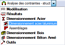 - Dans la barre d'outils standard, développez le menu déroulant des présentations et sélectionnez Dimensionnement acier/aluminium, comme illustré ci-dessous :