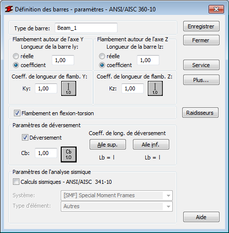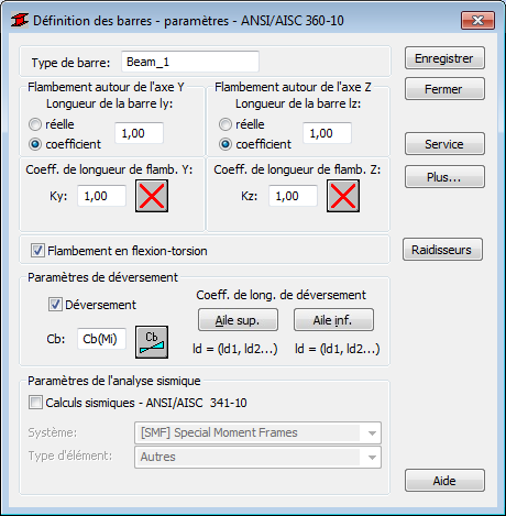 - Dans le groupe d'options Coeff. de longueur de flamb. Y, cliquez sur