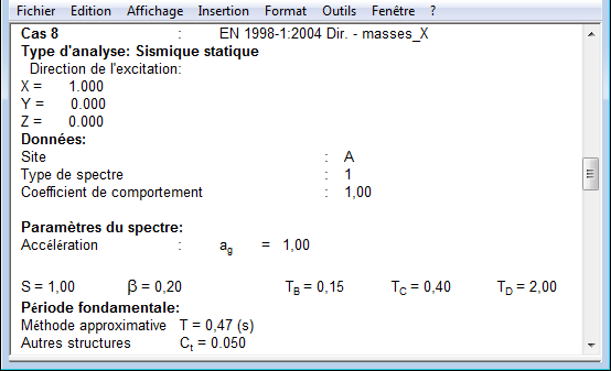 - Les paramètres définis et les résultats intermédiaires de l'analyse sismique peuvent également être consultés dans une note de calcul. Dans la barre de menus, cliquez sur .