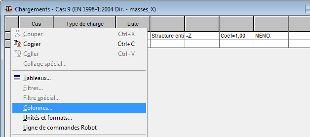 - Cliquez avec le bouton droit de la souris sur le tableau et sélectionnez Colonnes....