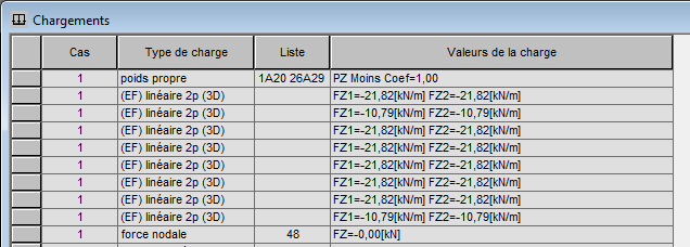 Remarque : Les efforts sollicitants pour les cas de charge sont générés lors des calcul de l'analyse de la structure.